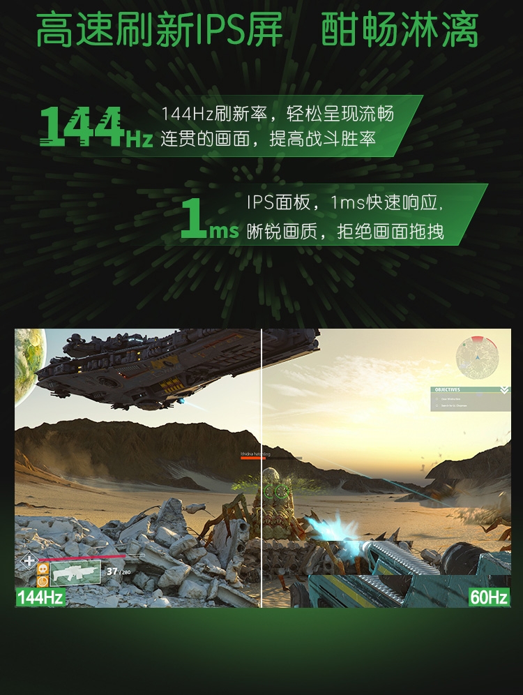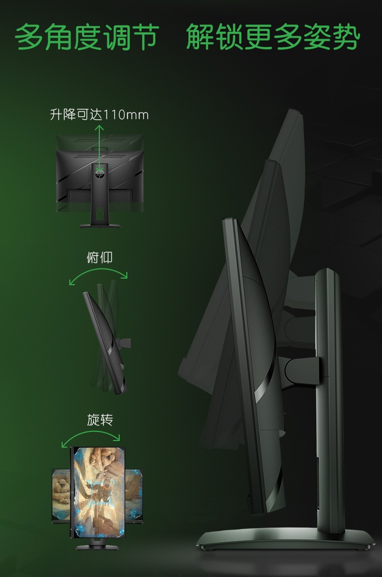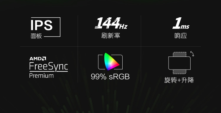23.8英寸 FHD电竞显示器 IPS 屏 144Hz 微边框 FreeSync Premium升降底座